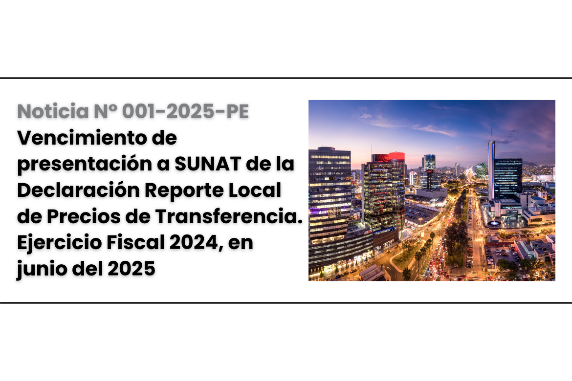 Noticia N° 001-2025-PE | Vencimiento de presentación a SUNAT de la Declaración Reporte Local de Precios de Transferencia. Ejercicio Fiscal 2024, en junio del 2025