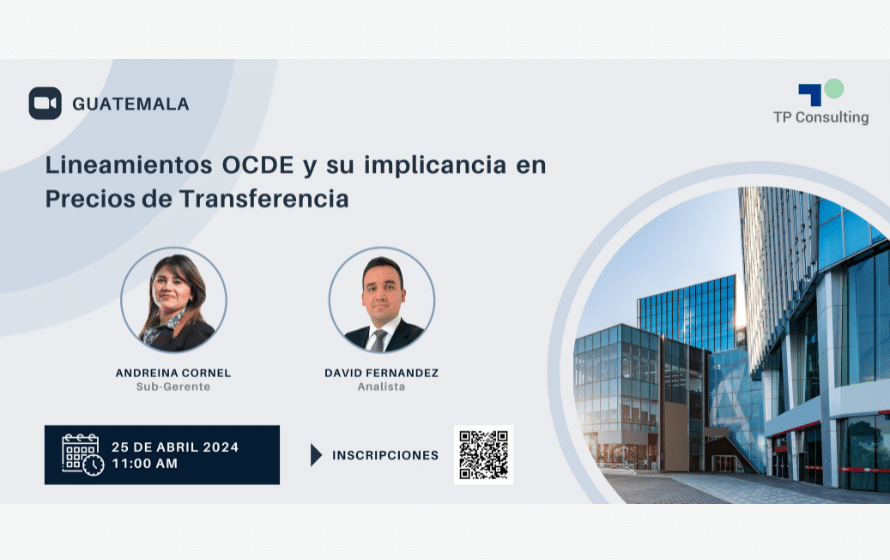 TP Consulting Guatemala invites you to the webinar “OECD Guidelines and Their Implications for Transfer Pricing ,” where the following topics will be discussed: