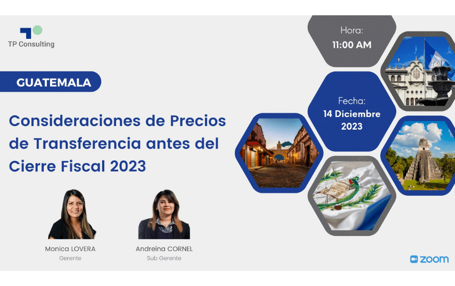TP Consulting Guatemala invites you to the webinar “Transfer Pricing Considerations Before the 2023 Fiscal Year End ,” where the following topics will be discussed: